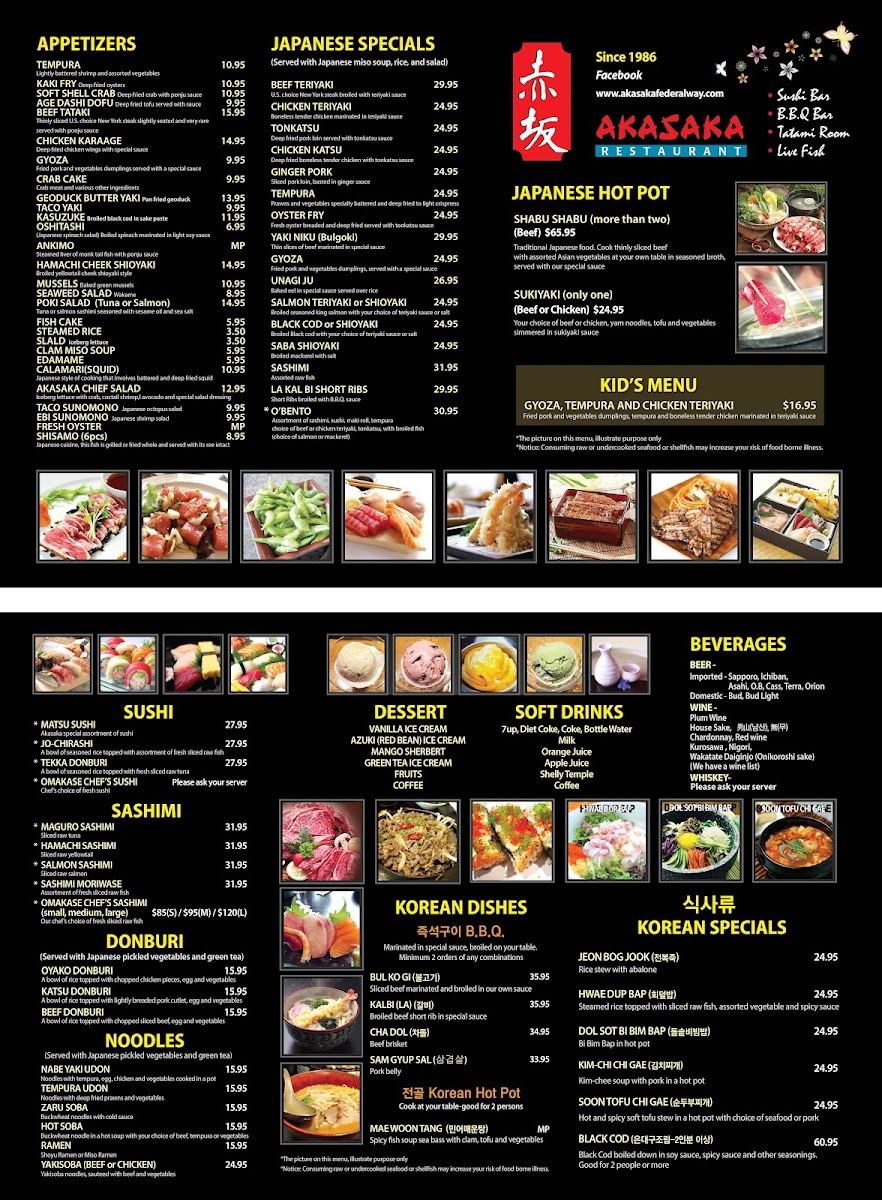 If you're in the mood for an unforgettable dining experience, look no further than Akasaka Restaurant in Federal Way. Located at 31246 Pacific Hwy S, this cozy spot offers a delightful variety of dishes that will keep you coming back for more. Whether you're craving something light and fresh or hearty and flavorful, the menu is full of options that are sure to please every palate.